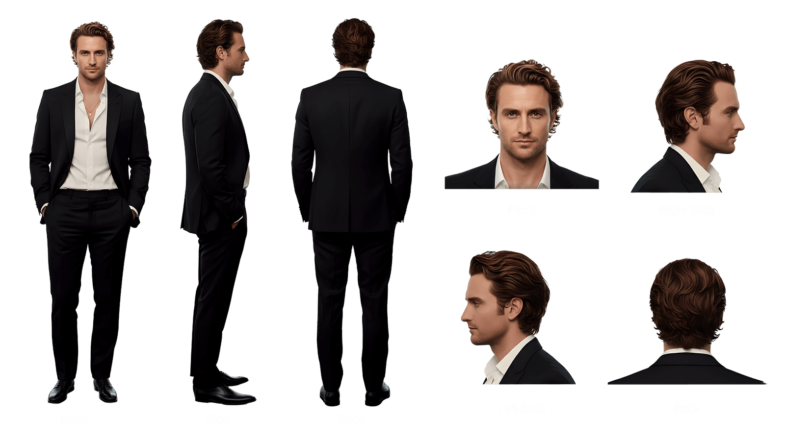 We generated full multi-angle character sheets for both leads—front, profile, and rear—to establish a consistent visual reference throughout the campaign. This allowed us to maintain continuity across every scene, shot, and AI-generated sequence, ensuring the characters felt grounded, recognizable, and believable no matter the environment or camera angle. By locking character identity early, we were able to focus on storytelling, performance, and mood without visual drift—an essential step in producing cohesive, cinematic AI commercials.